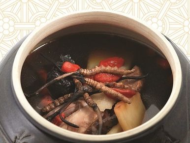 Cho thịt gà, thảo mộc đã ngâm và đông trùng hạ thảo vào nồi đun cách thủy. Thêm dâu tây đã rửa sạch vào súp và đun nhỏ lửa trong khoảng 30 phút. Món ăn ra và phục vụ.